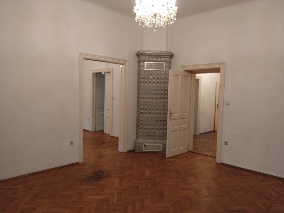 Die Villenetage hat drei schöne, hohe Zimmer, eine separate Küche die getrennt wurde und ein Kabinett dazugekommen ist, ein Bad mit Badewanne und ein separates Gäste-WC.