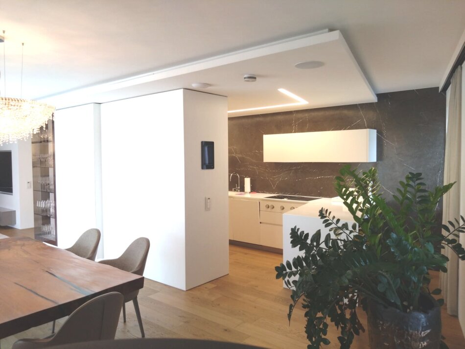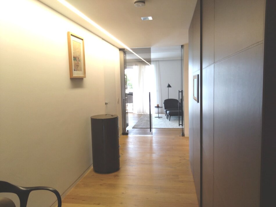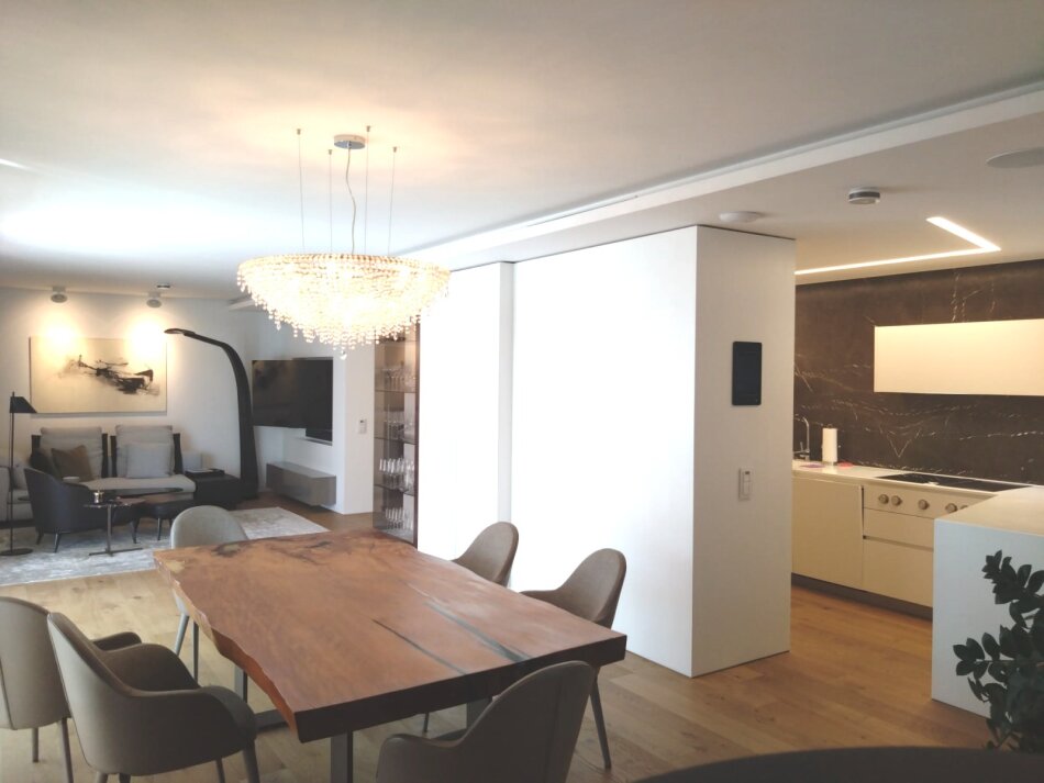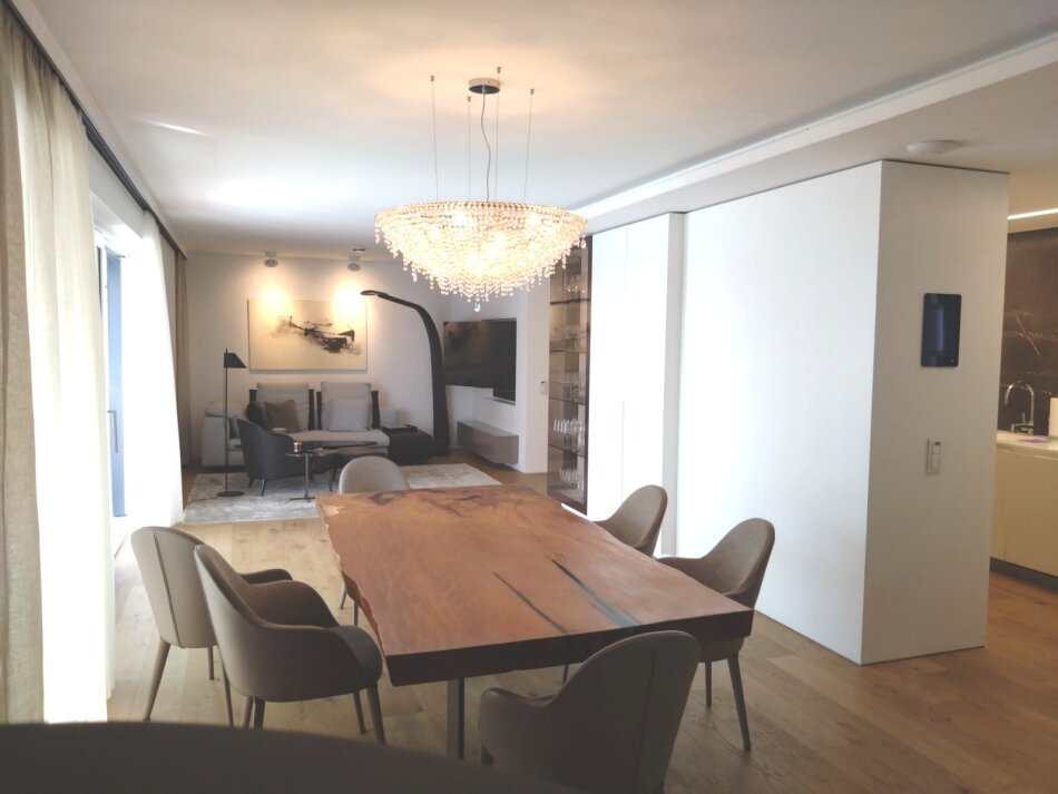 Diese klassisch moderne Wohnung verfügt über einen Wohnsalon und einem großzügigen Essbereich mit direktem Ausgang auf die ca.16 m² Südterrasse. Das besondere Flair wird durch den Grünblick und die exklusive Ausstattung hervorgehoben.