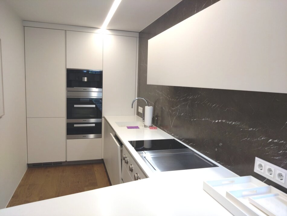 Die Küche mit Mielegeräten , Weinschrank, Nespressovollautomat und geschmackvoller Einrichtung lädt zum Kochen ein.