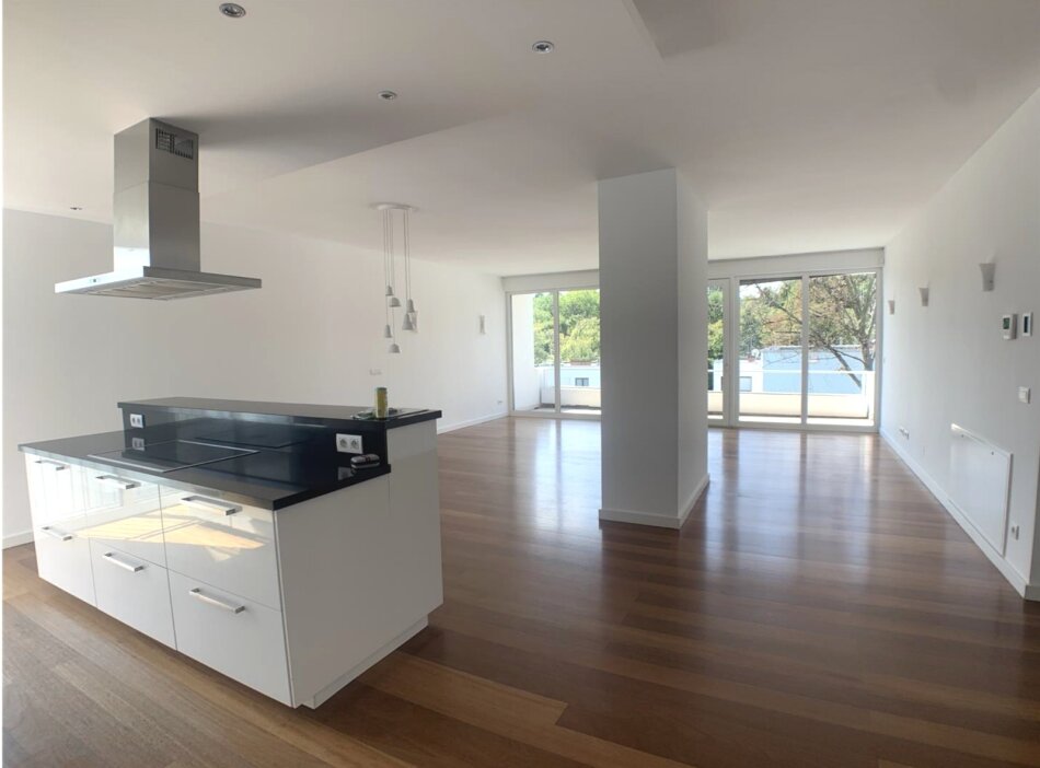 Der traumhafte 65 m² südöstlich ausgerichtete Wohnsalon (mit Küche und Essplatz) hat einen direkten Ausgang auf die Terrasse.