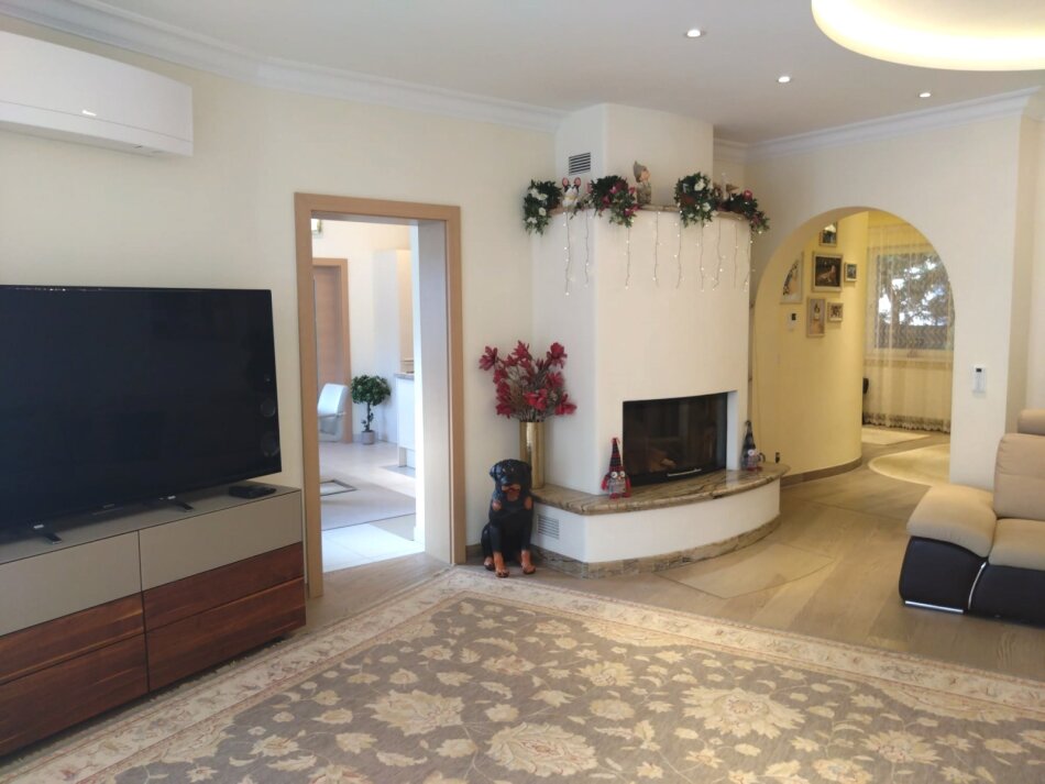 Es verfügt über einen 49 m² großen Wohnsalon mit Kamin und direktem Ausgang auf die Terrasse und den beheizten Pool und den Garten.