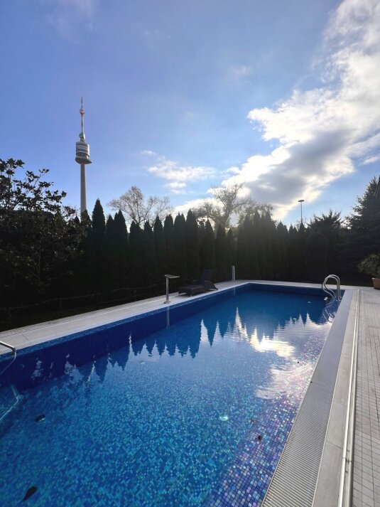 Im Kellergeschoß befindet sich eine Garage, ein Weinkeller, ein Weinverkostungsraum, eine Sauna mit direktem Ausgang zum Alpinum, eine Werkstatt, sowie Technikräume.