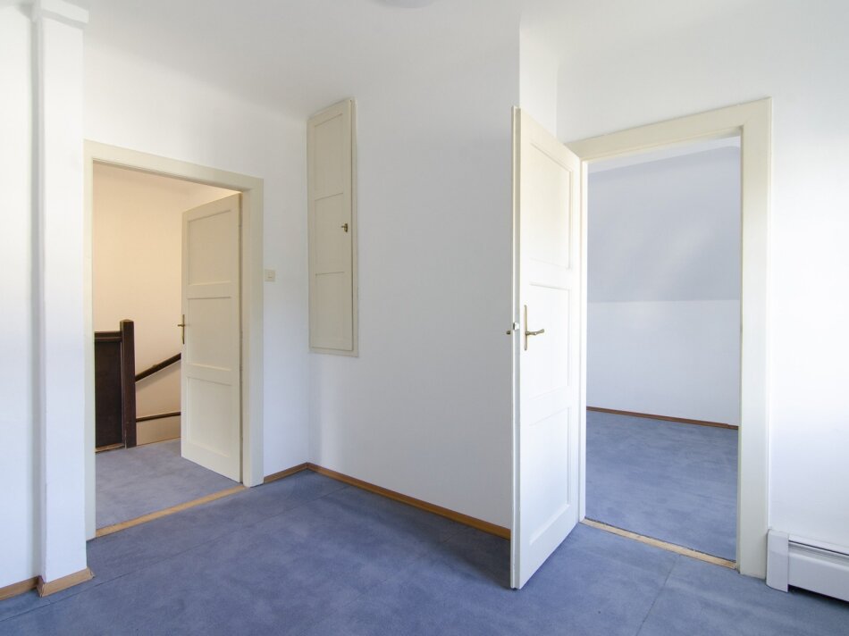 Im 1. Obergeschoß befinden sich ein Schlafzimmer mit anschließendem Zimmer (Büro oder Garderobe) und ein Bad.