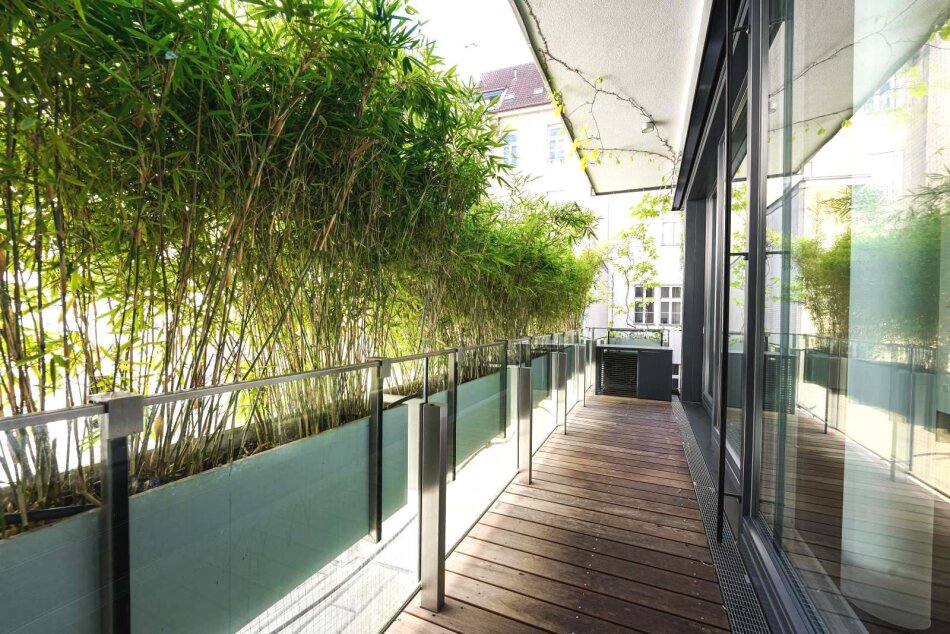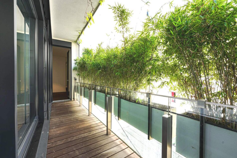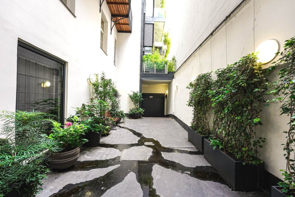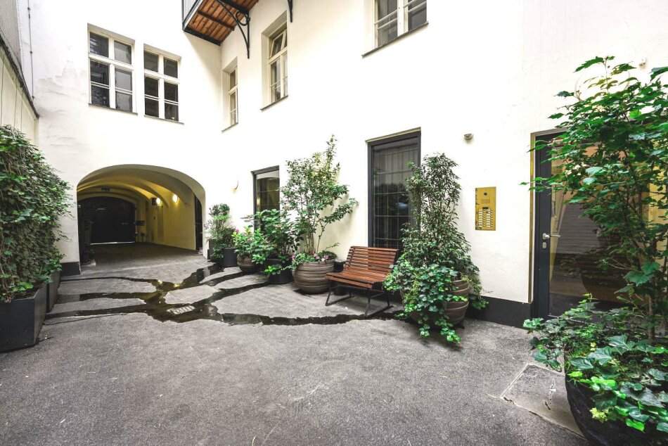 Herzstück der Wohnung ist die 8 m² große, in den ruhigen Innenhof reichende Loggia, die sowohl vom Wohnsalon, als auch vom Schlafzimmer zugänglich ist.