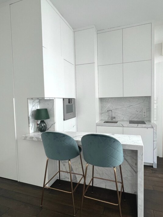 Die Wohnung besteht aus einem Wohnsalon mit integrierter vollausgestatteter Küche, einem Schlafzimmer mit en-suite Badezimmer,
