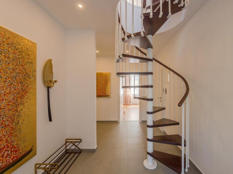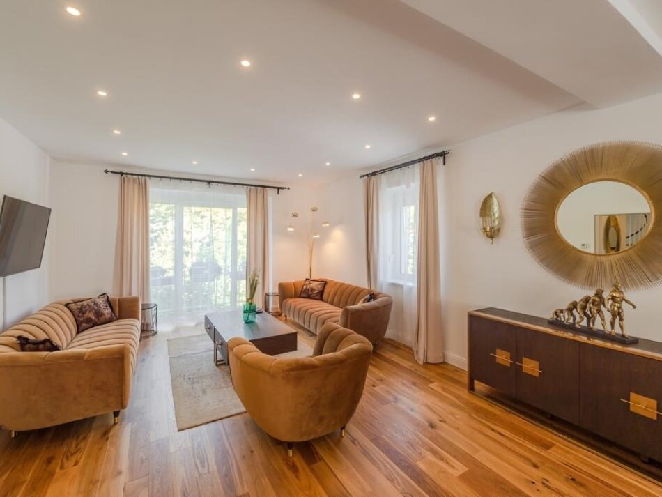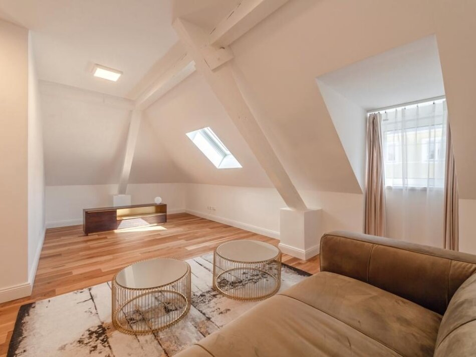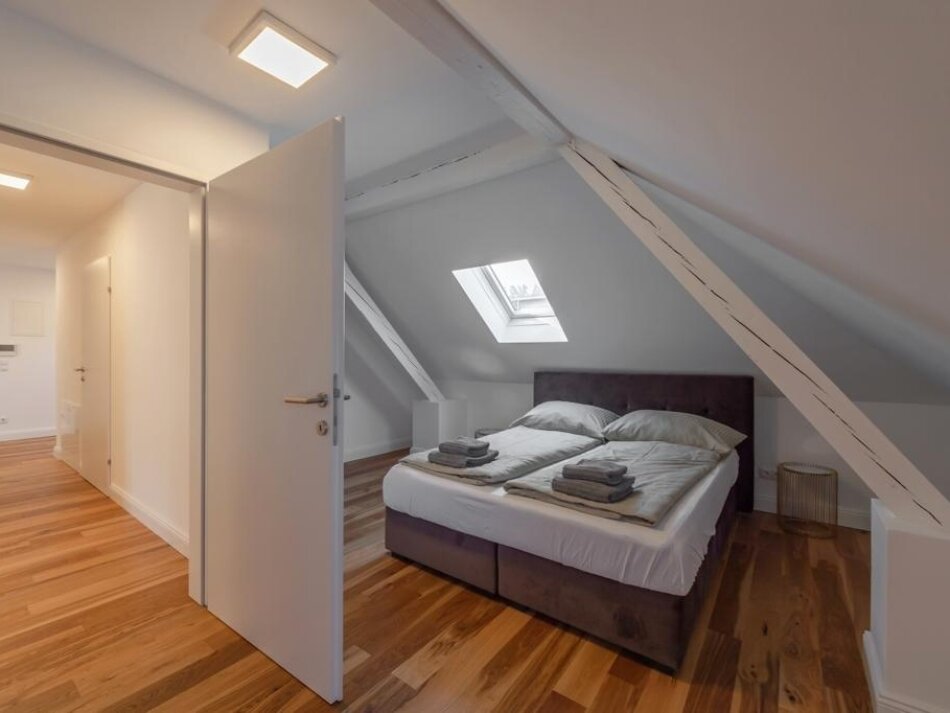 The converted attic houses additional stylish living spaces, including more bedrooms and another high-quality bathroom. This level is perfect as a retreat or independent living area – spacious, bright, and thoughtfully planned.