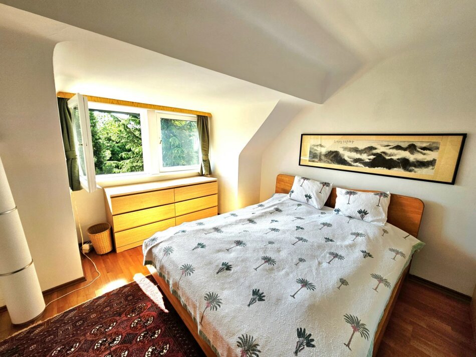 In the attic, you currently find a spacious bedroom and two yet undeveloped attic rooms that offer you plenty of freedom for expansion.