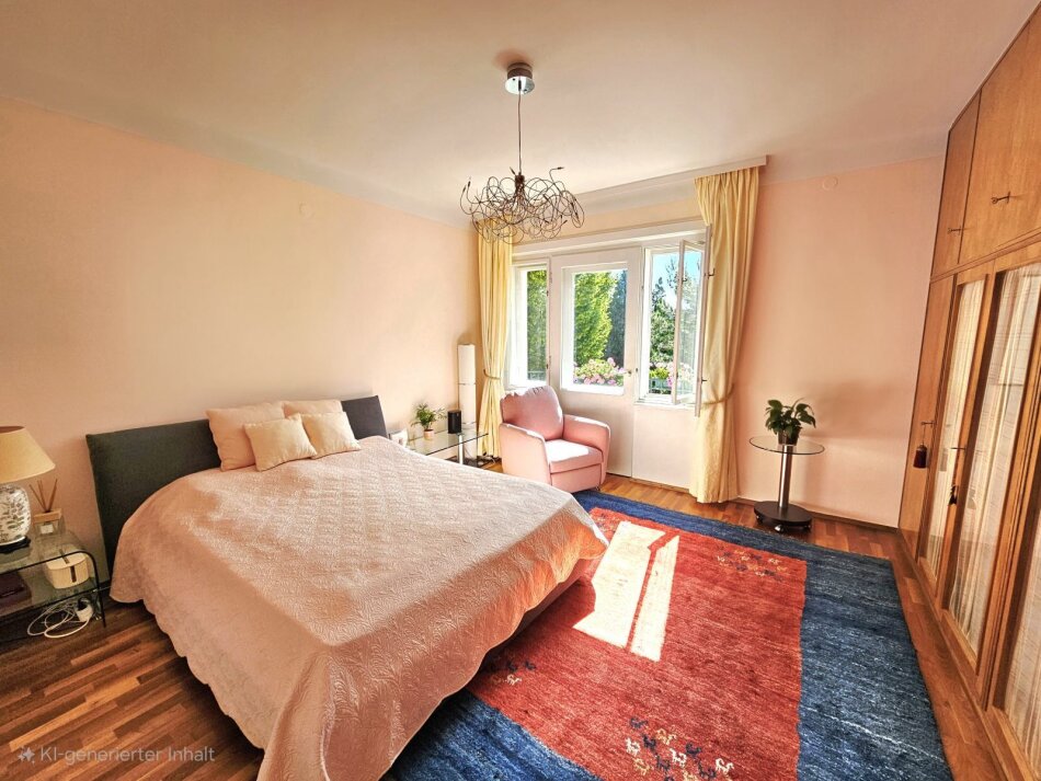 Im Obergeschoss finden Sie drei einladende Schlafzimmer, die Ihnen und Ihrer Familie Rückzugsmöglichkeiten bieten. Jedes Zimmer besticht durch einen herrlichen Blick ins Grüne und auf den Garten. Ein Balkon lädt dazu ein, die frische Luft und die Ruhe der Umgebung zu genießen. Der zentrale Vorraum verbindet die Schlafzimmer und führt zu einem großzügigen Badezimmer, das mit modernen Annehmlichkeiten ausgestattet ist und Raum für Entspannung bietet.