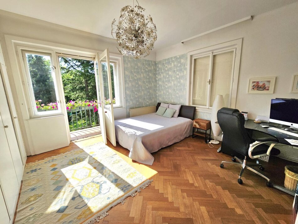 This charming family home from the early 1930s combines timeless elegance with modern comfort, offering you and your family an ideal living environment. With three spacious floors and a lovingly designed garden with a pool, this house is the perfect retreat for young and old.