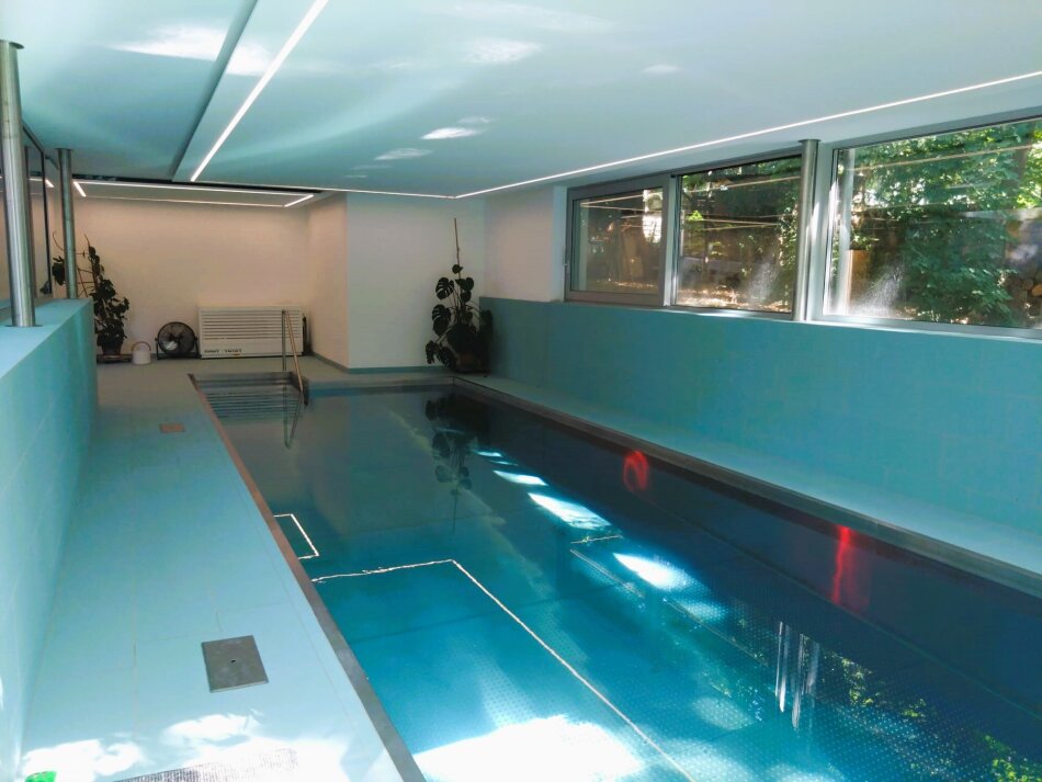 Das Haus bietet als Besonderheit einen herrlichen Wellnessbereich mit Sauna und Pool und direktem Ausgang in den Garten.