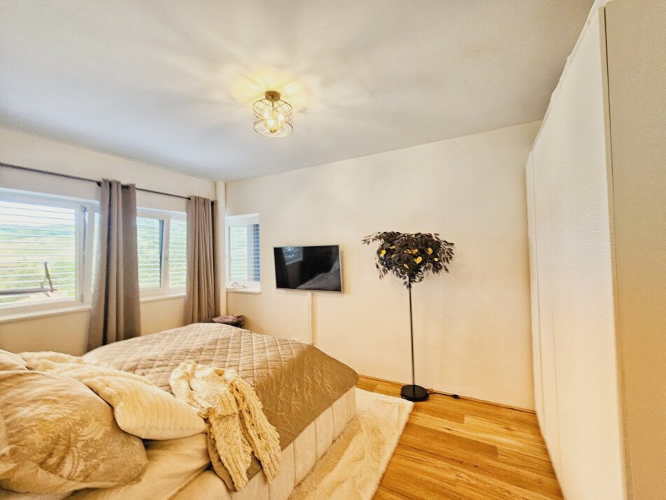 Im 2. Obergeschoss finden Sie einen sonnigen Schlafraum mit Ausgang auf die große Terrasse mit Traumblick, sowie eigenem Badezimmer.