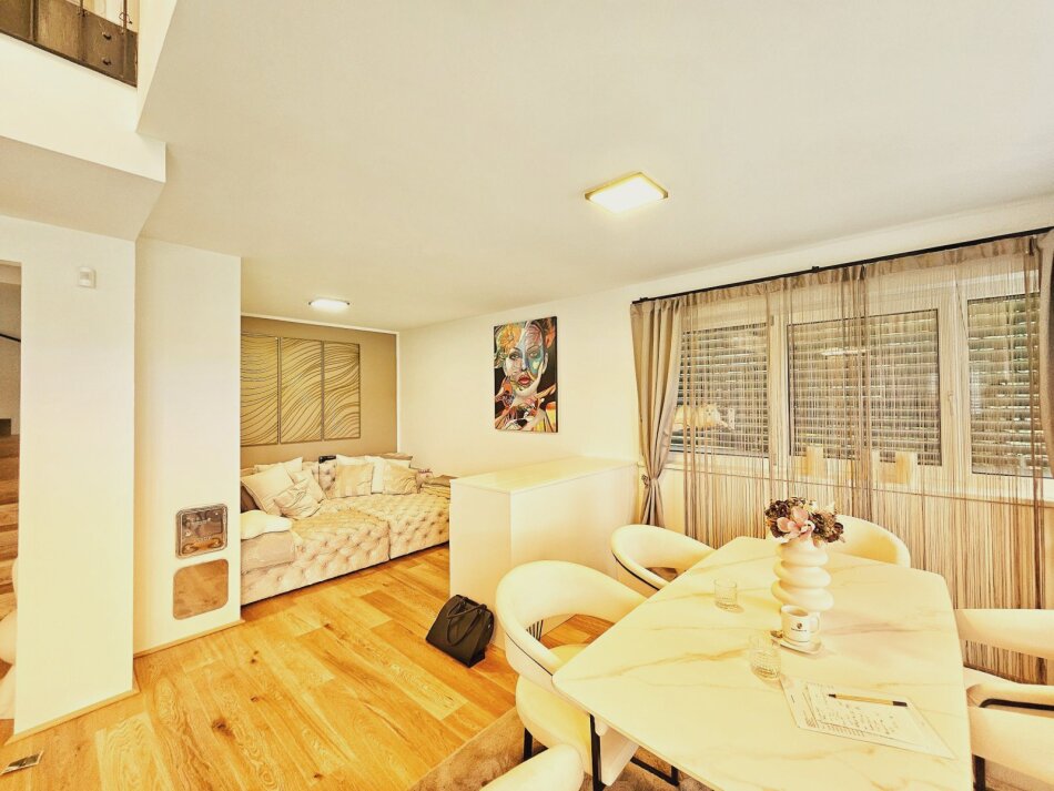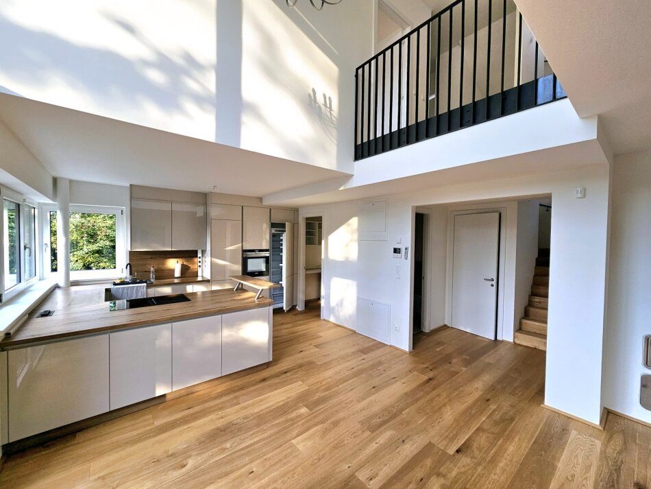 Das großzügige, loftartige Erdgeschoss besteht aus einer offenen Wohnküche und Ausgang auf die herrliche Terrasse mit Weingartenblick!